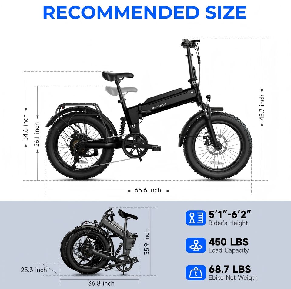 Foldable, fat tires, Removable Battery, pedal assist