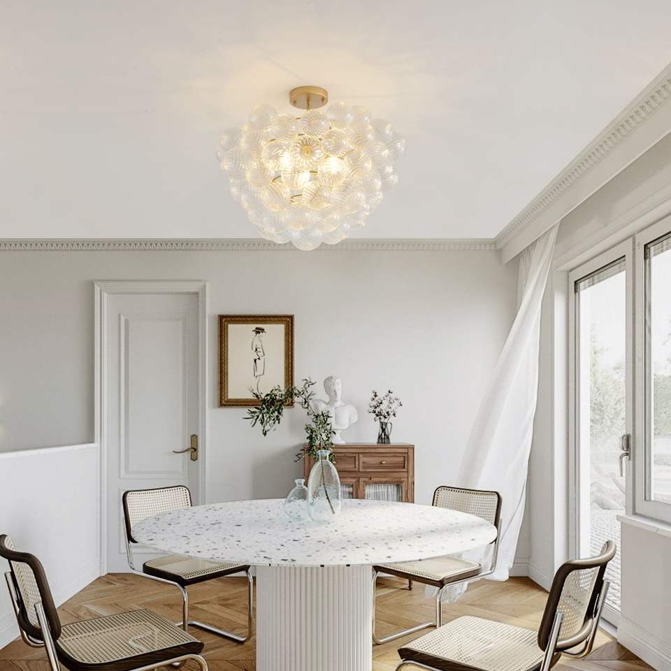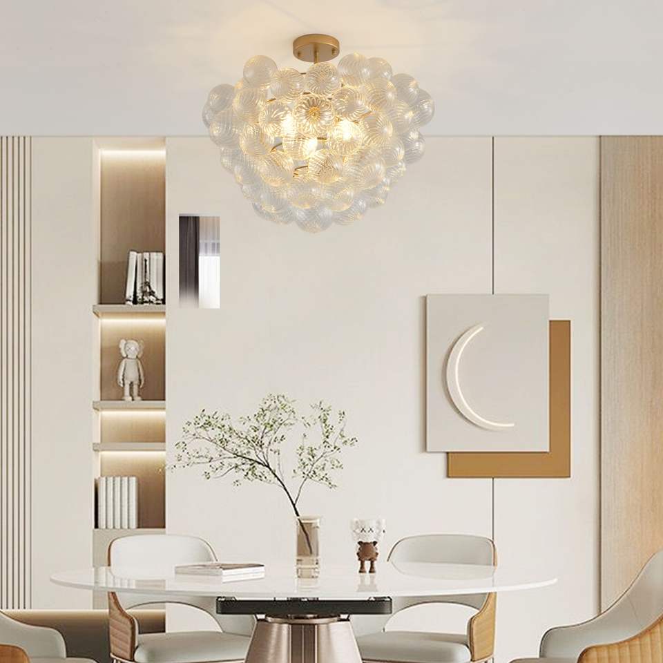 Lampadario a sospensione dorato da 20 pollici con paralume a globo in vetro trasparente per soggiorno, sala da pranzo, cucina (non regolabile)