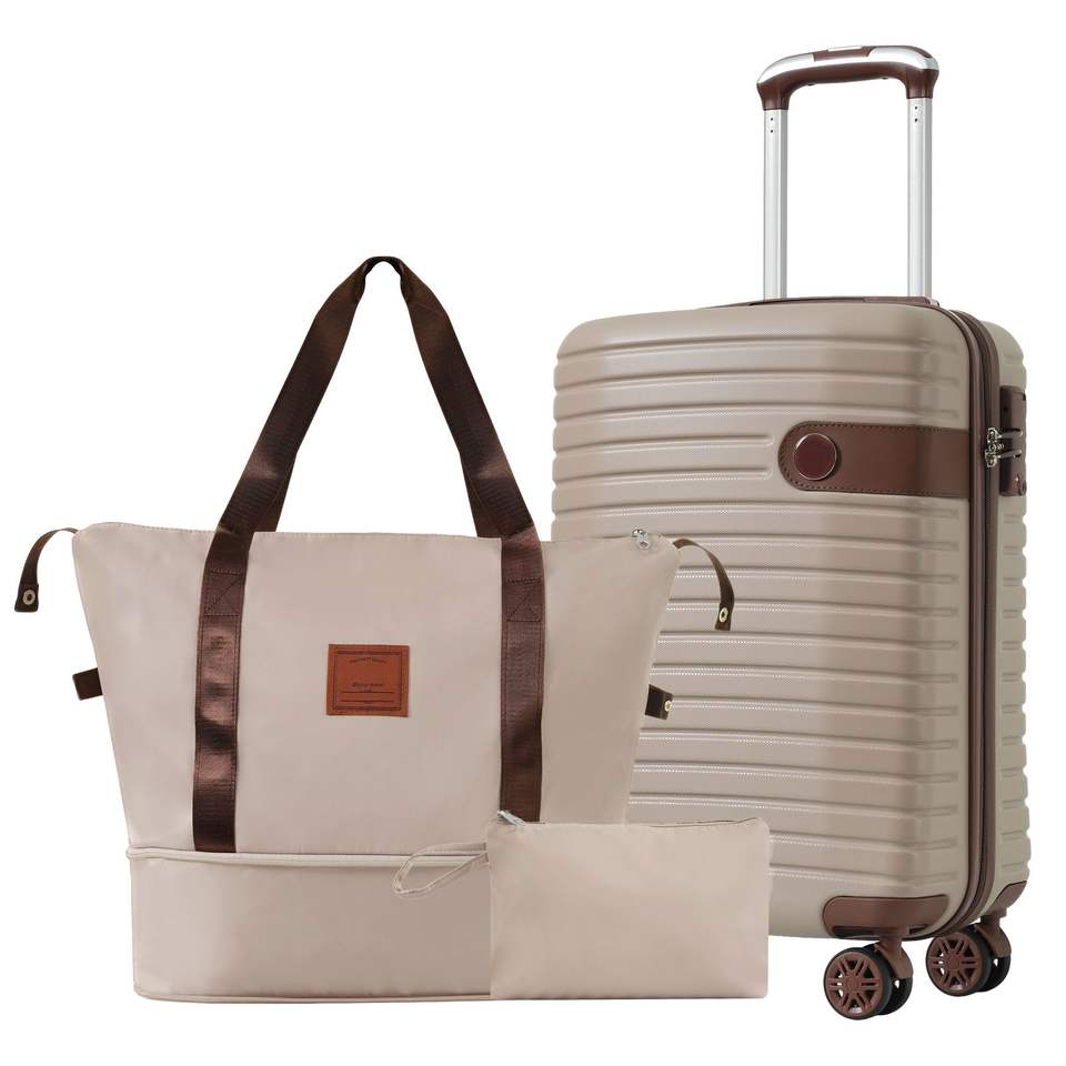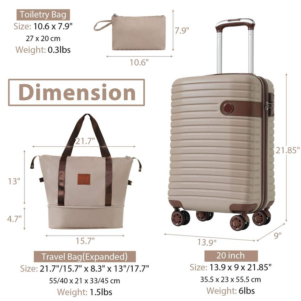 Set di Valigie Kaki da 20 Pollici, 3 Pezzi, Leggere, in ABS Rigido, Bagaglio a Mano 22x14x9, Approvato dalle Compagnie Aeree, con Ruote