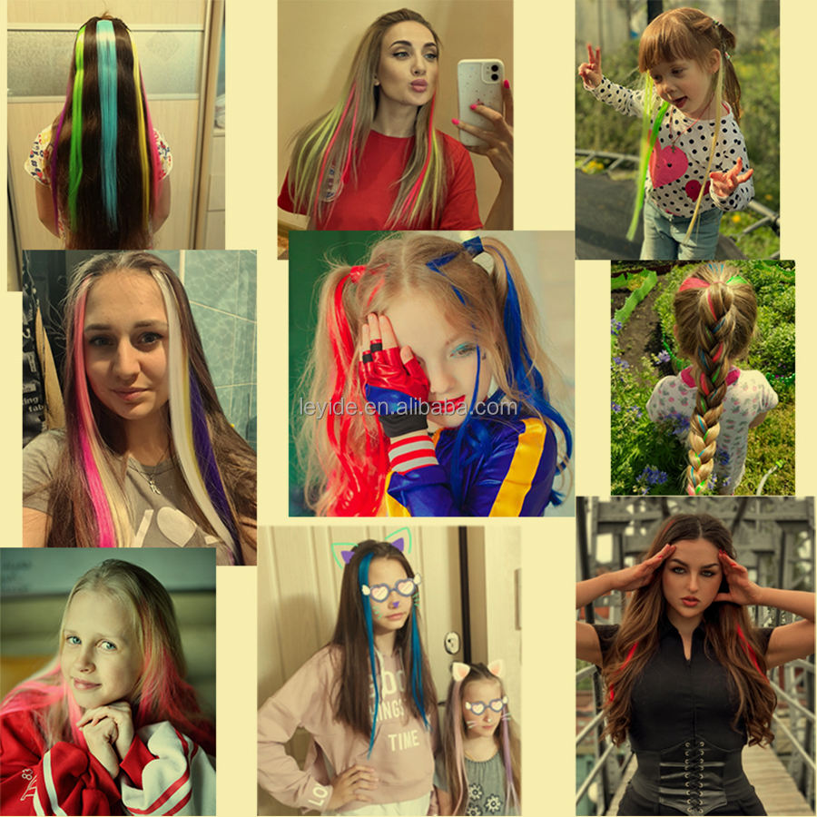 Extension per Capelli Sintetici a Clip da 20 Pollici, Lisci con Riflessi Colorati, per Ragazze, Bambini e Donne
