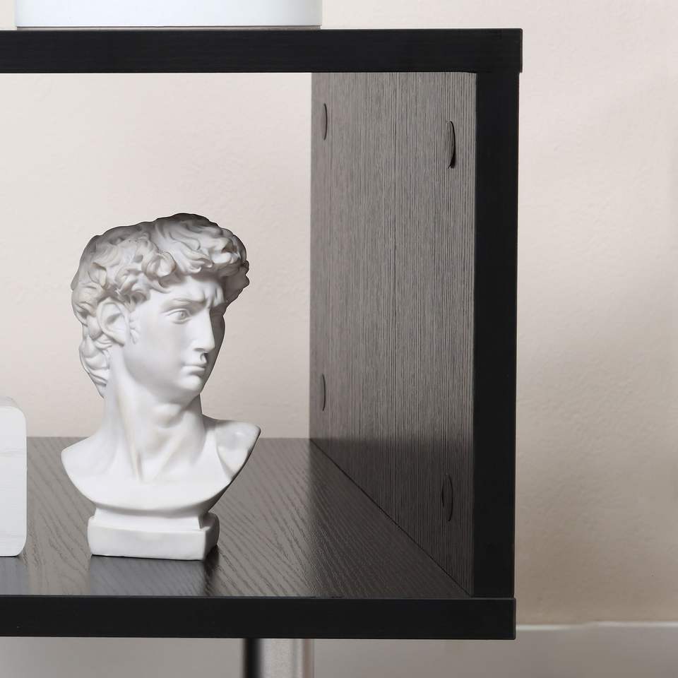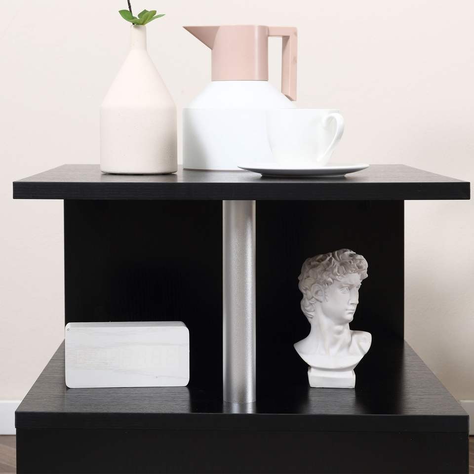 Tavolino da Caffè Moderno Nero a Forma di S da 20 Pollici con Ripiano Portaoggetti e Gambe in Acciaio, Tavolo Consolle/Accento Laterale