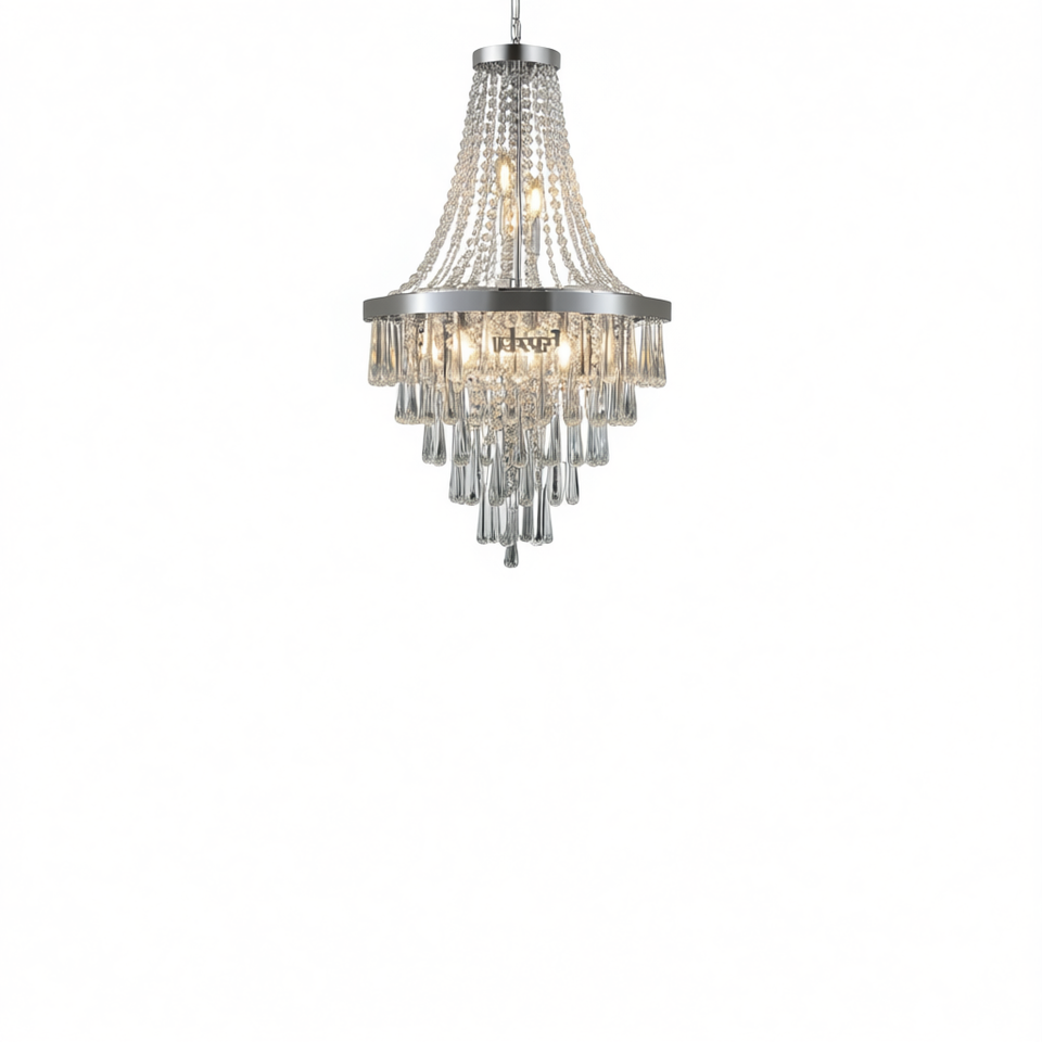 Lampadario Moderno in Ferro Cromato e Cristallo, 20 Pollici, 11 Luci, Base E12, Altezza Regolabile, Illuminazione a Soffitto per Soggiorno e Sala da Pranzo