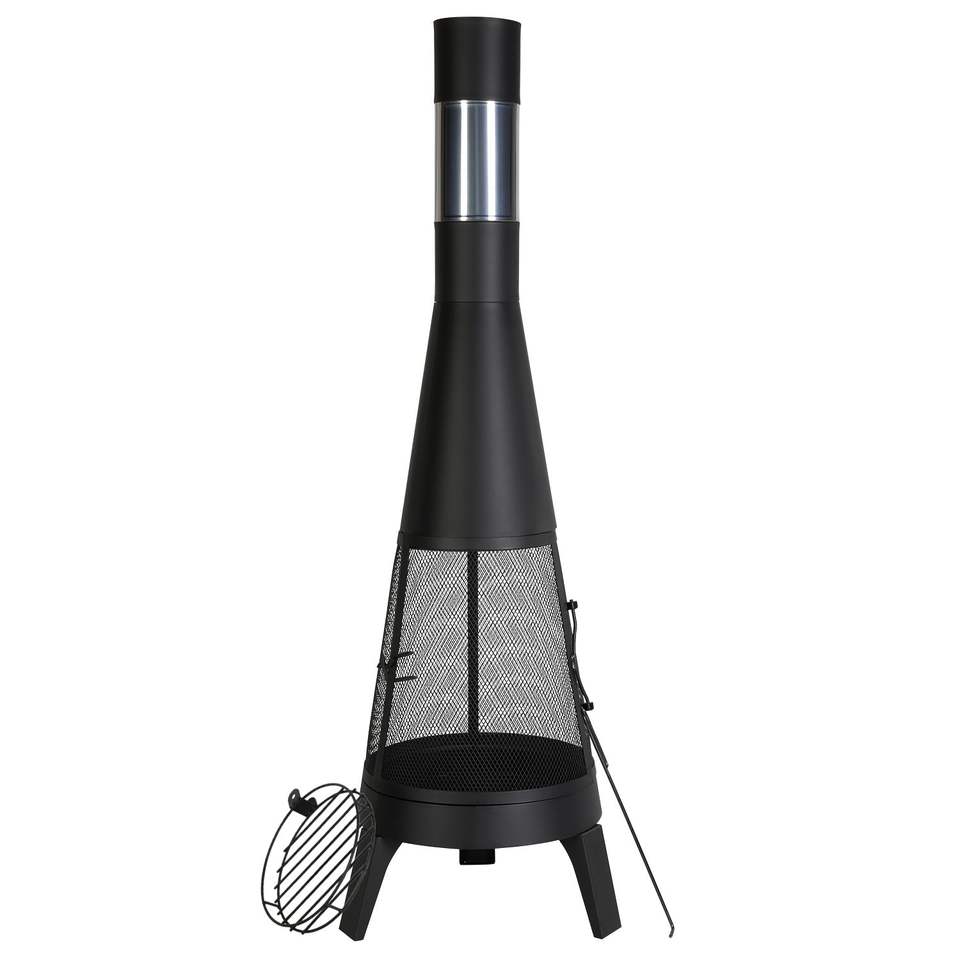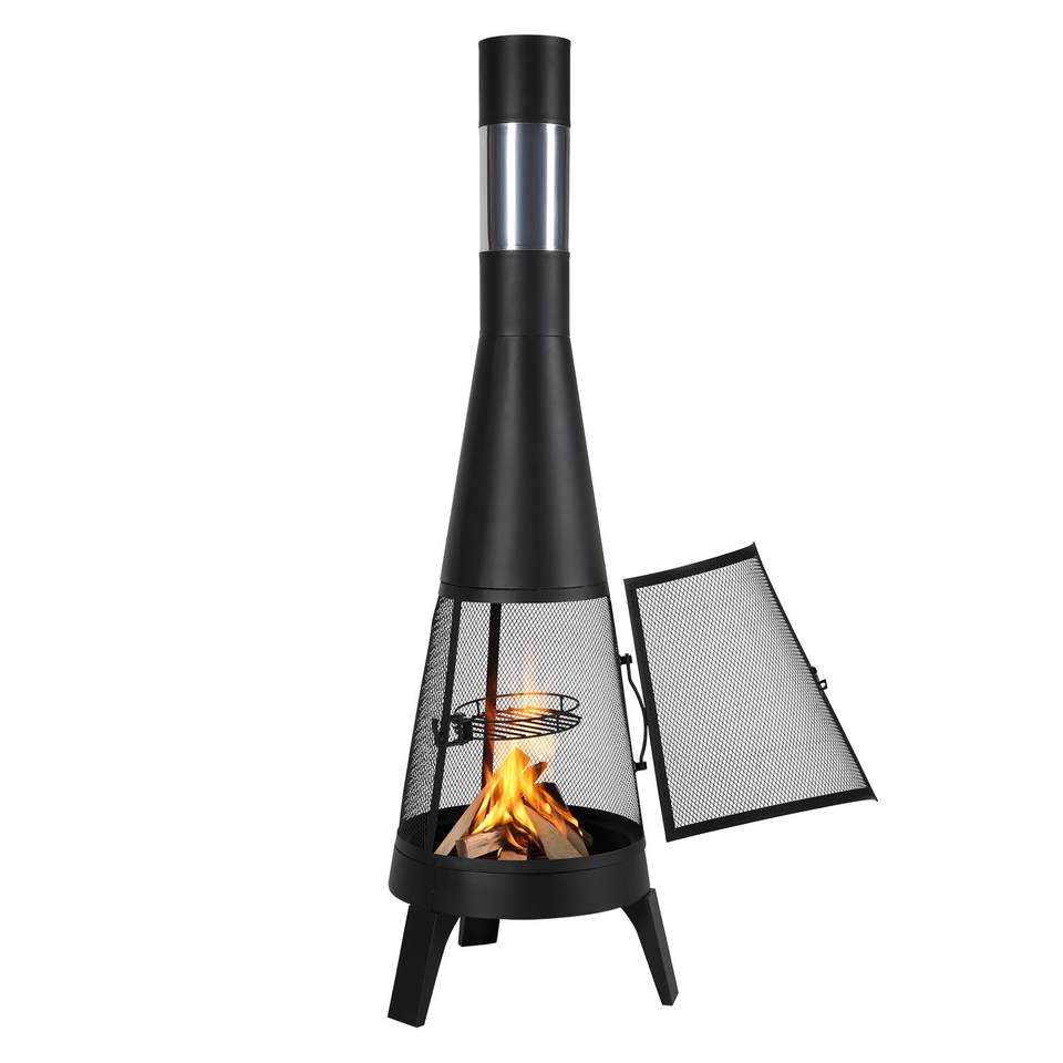 20-Inch Outdoor Wood Burning Chiminea Conical Fireplace for BBQ Warming Outside Wooden Fire Pit with Grill Mesh