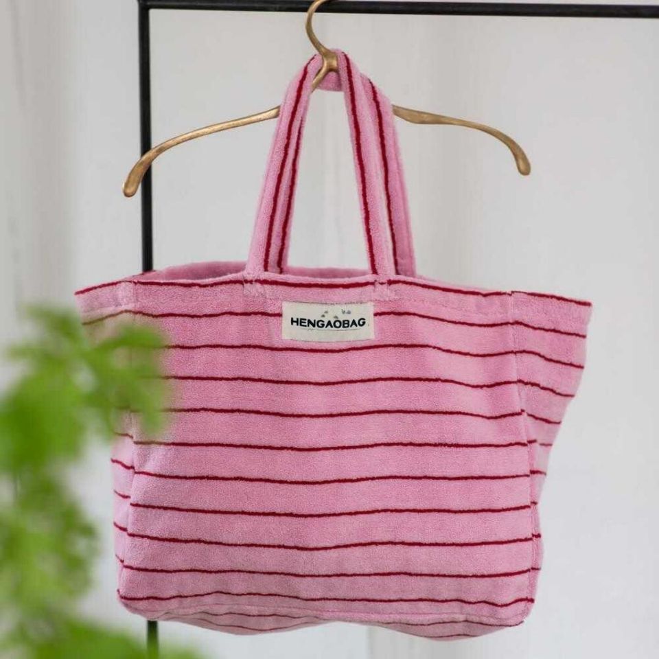 Borsa da 20 pollici Pinky White Tote Bag spugna a righe spugna borsa da spiaggia 100% cotone rettangolare quadrato da spiaggia da donna portatile da viaggio per il fine settimana