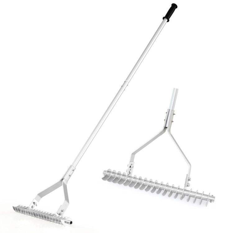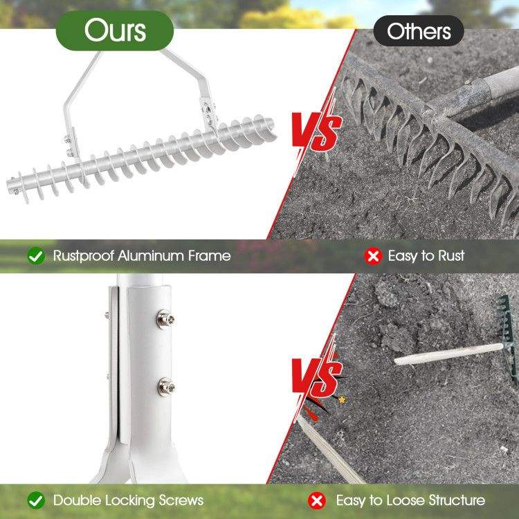 Rastrello da Giardino in Alluminio da 20 Pollici con Manico Lungo e 19 Denti Curvi per Dissodare il Terreno
