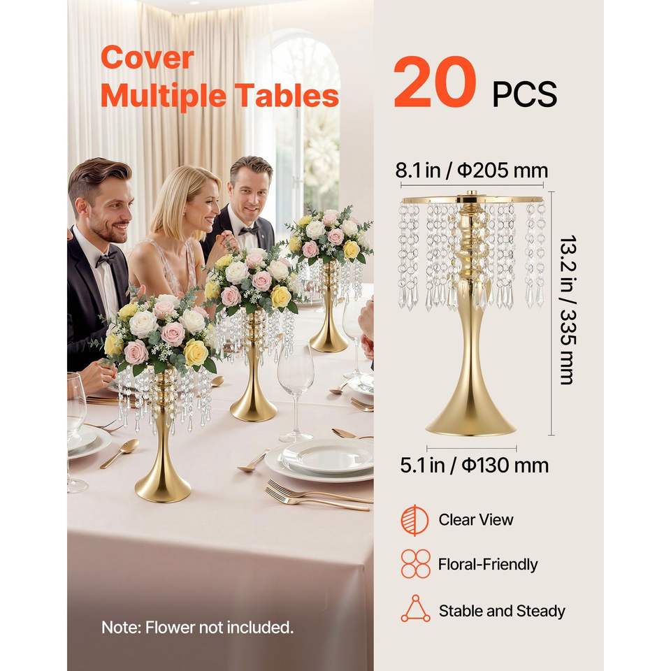 20 Pezzi Vasi per Fiori da Matrimonio con Finitura Elettroplaccata, Facile Installazione, Altezza 13,8 Pollici, Centrotavola in Cristallo per Banchetti, Modello Decorativo