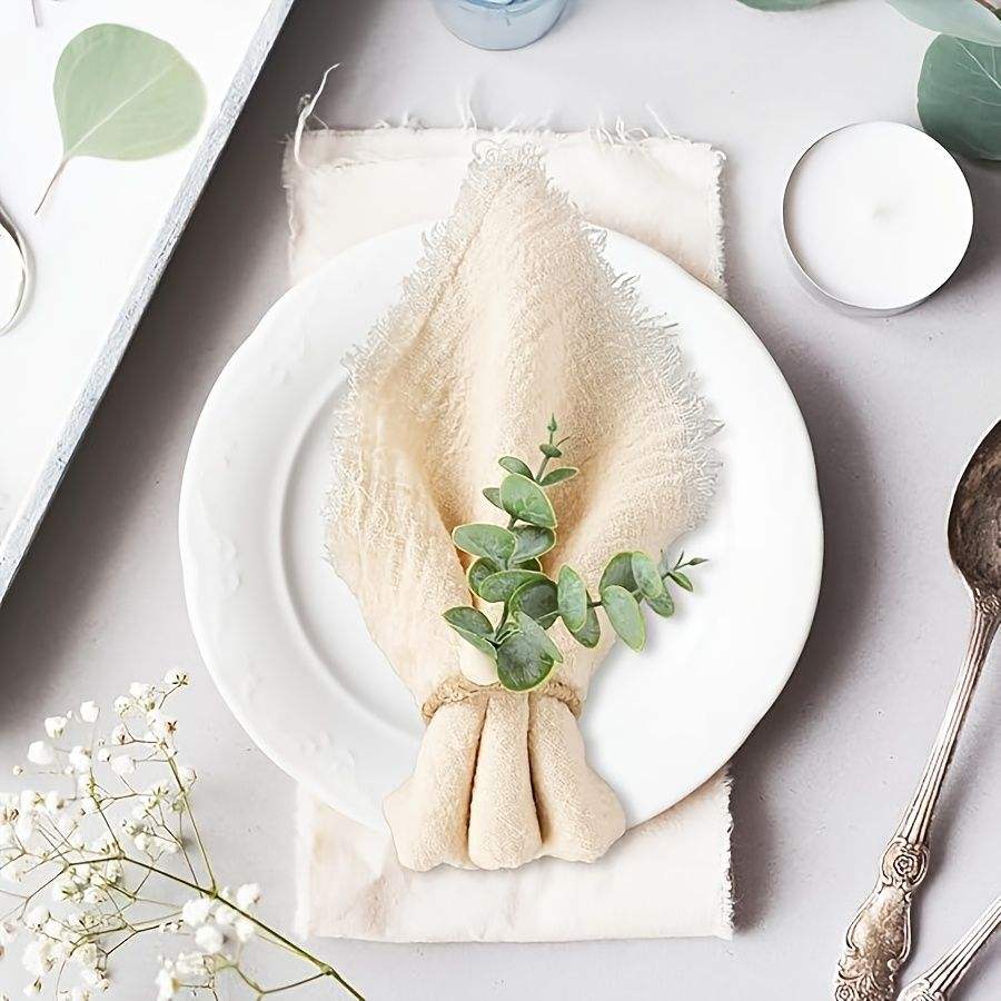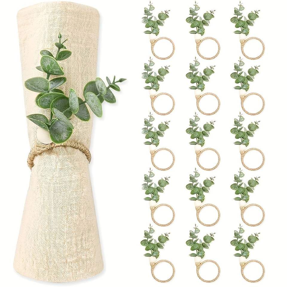Set di 20 Anelli Portatovaglioli Stile Boho con Foglie di Eucalipto e Perline in Legno, Decorazioni Rustiche per Matrimoni e Feste Primaverili ed Estive