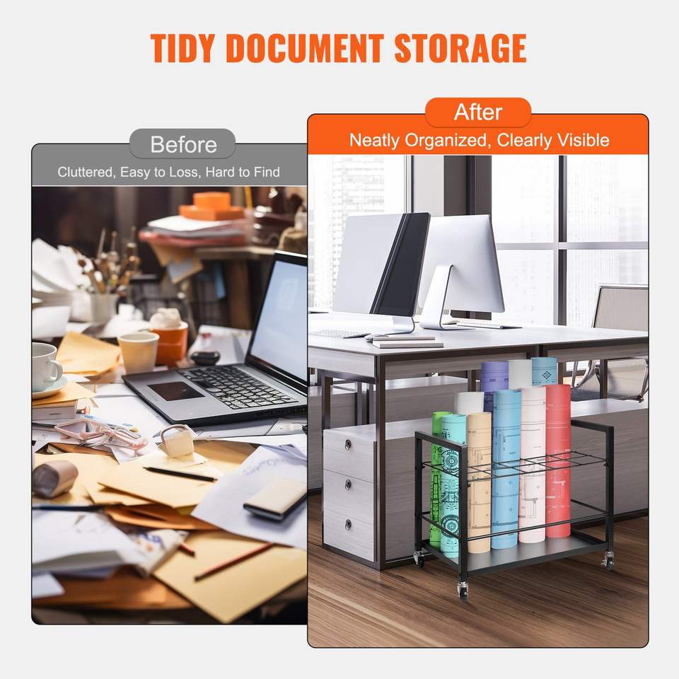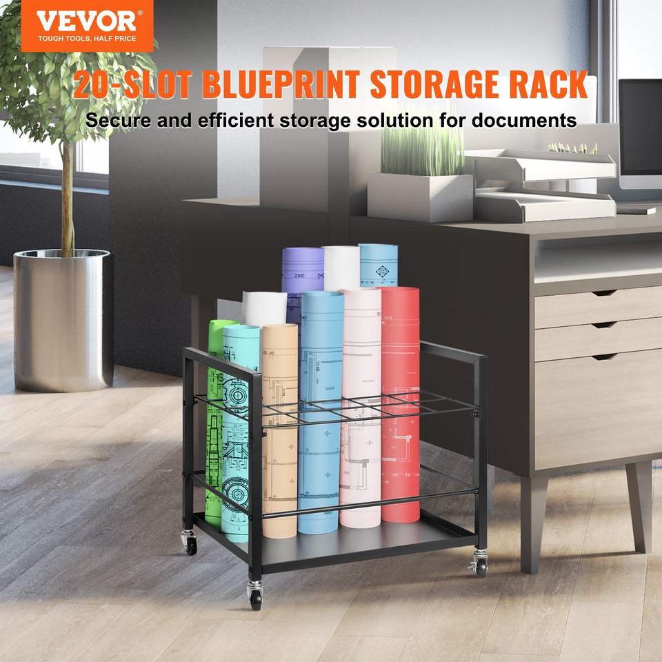 Carrello Portadisegni in Metallo a 20 Scomparti con Ruote, Espositore per Mappe e Poster, Portadisegni per Architetti