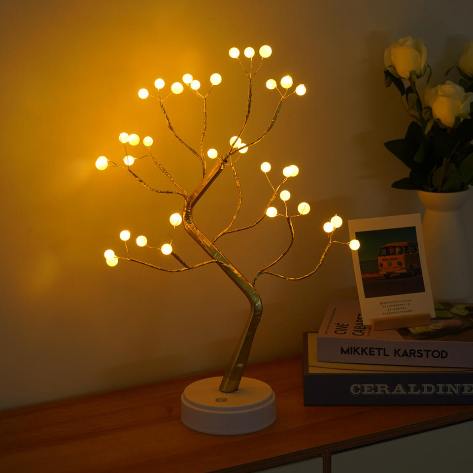 Lampada da Scrivania a LED a Forma di Bonsai da Tavolo da 20" con 36 Perle, Filo di Rame, Grado di Protezione IP44, Luci Natalizie Artificiali e Illuminazione Decorativa