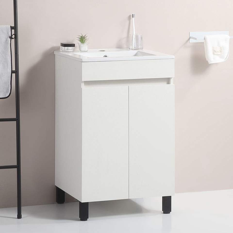 20\" White Bathroom Cabinet with Black Tripod Featuring Ceramic Sink-for Your Modern Bathroom Vanities