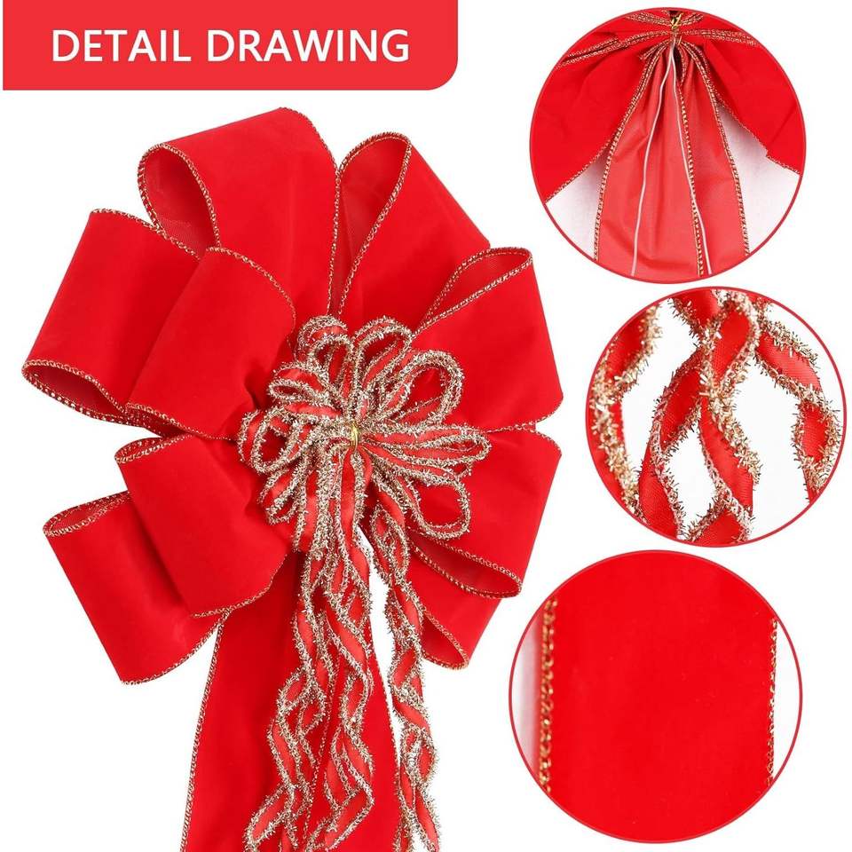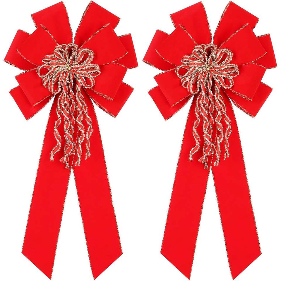20 X 10,5 Grandi Fiocchi Rossi in Velluto per Albero di Natale e Decorazioni per Porta d'Ingresso, Confezione da 2 per Festività Natalizie