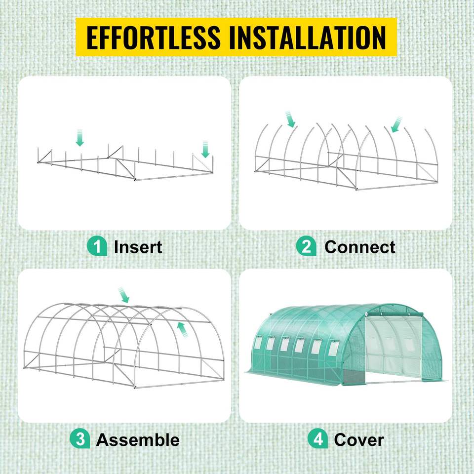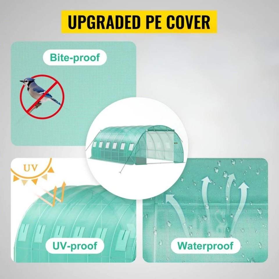 Serra Portatile a Tunnel 20 x 10 x 7 piedi con 3 Travi Superiori e 2 Pali Diagonali per Piante - Serre Agricole