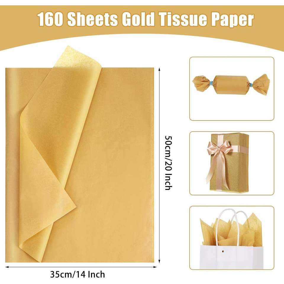 20 X 14 Pollici, Confezione da 160 Fogli di Carta Velina Dorata per Decorazioni Natalizie, Matrimoni, Compleanni - per Regali