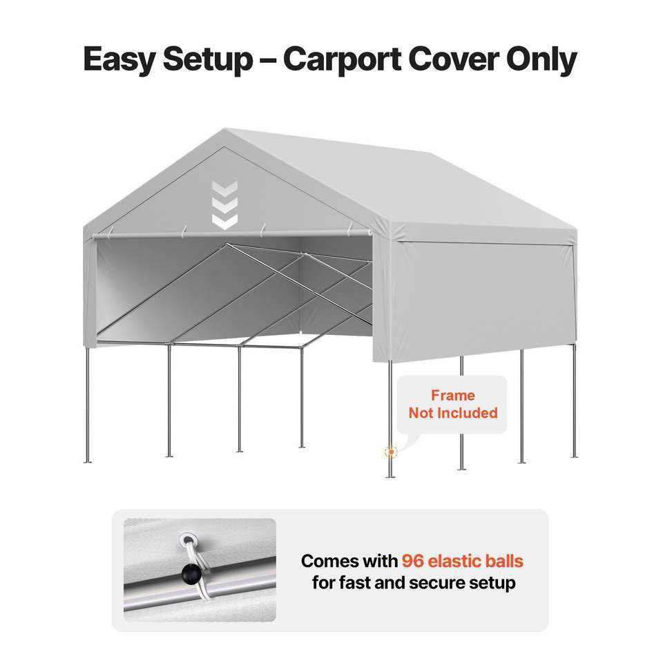 Telo di Ricambio per Carport 20x20 piedi, Resistente ai Raggi UV, Impermeabile, per Tenda Garage Portatile con Pareti Laterali