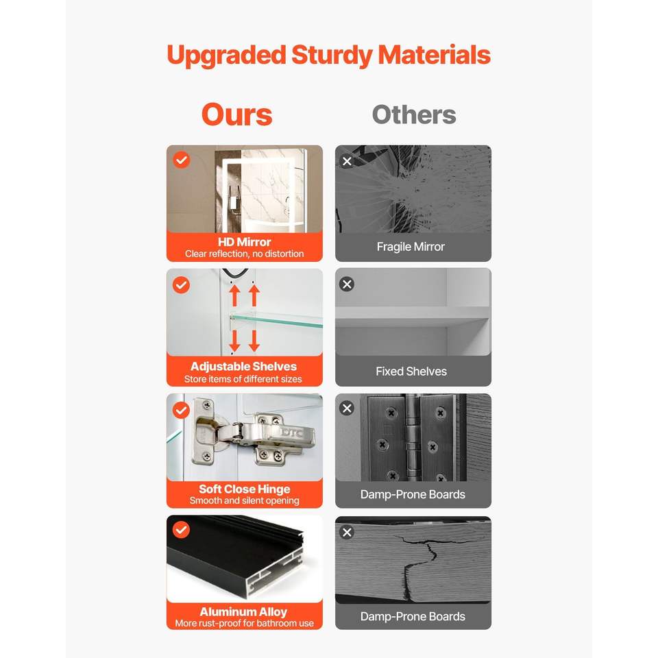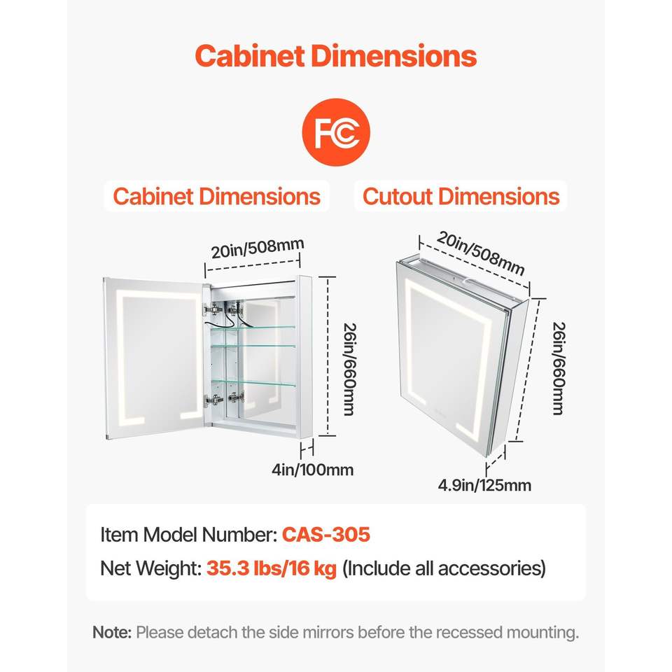 Specchio LED da Parete Incassato 20 X 26 con 3 Colori Dimmerabili, Armadietto Illuminato per Bagno