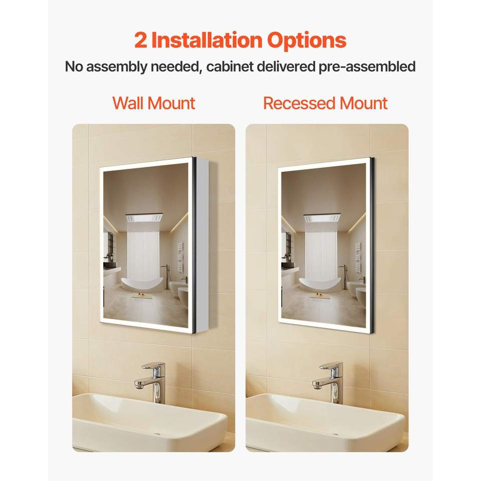 Specchio LED da Incasso a Parete 20 X 28 con 3 Colori Dimmerabili, Armadietto Illuminato per Bagno