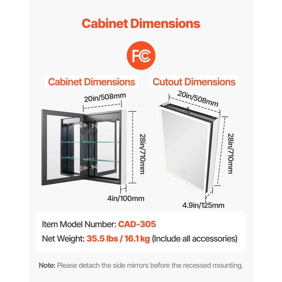 LED Medicine Cabinet Size