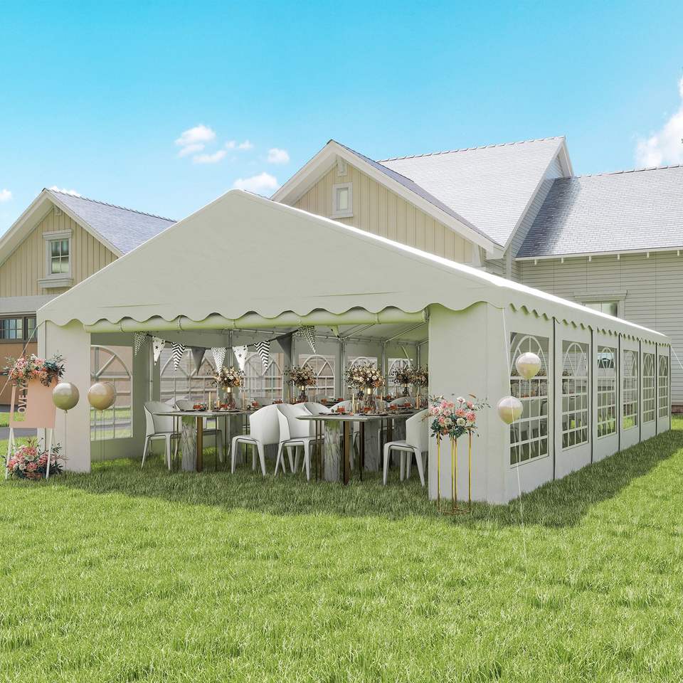 Tenda per Matrimoni ed Eventi 20 X 40 Bianca con Pareti Laterali Rimovibili e 12 Finestre per Eventi all'Aperto Come Matrimoni Feste Barbecue