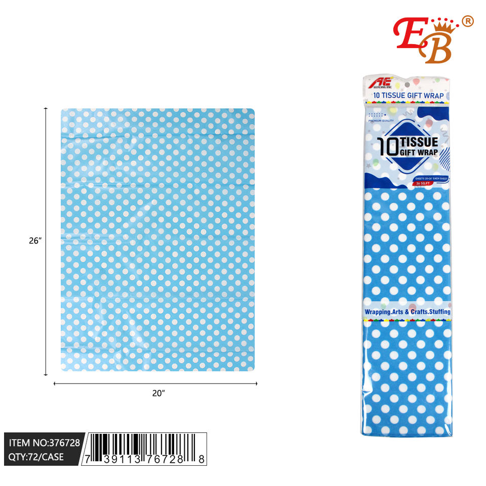 20 "x 26" lago blu punteggiato carta velina 10-PC Set 72 pz/CS Premium carta da imballaggio