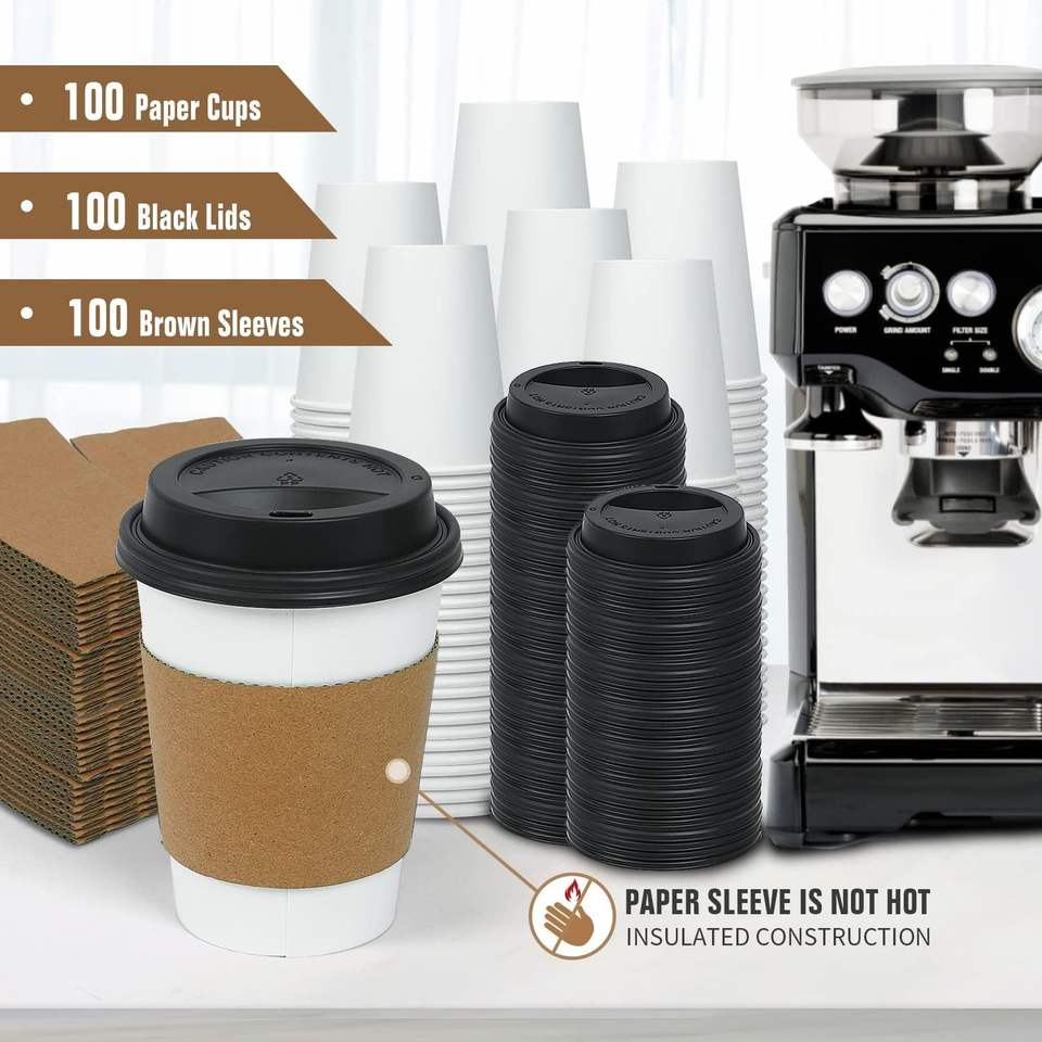 Confezione da 200 Bicchieri di Carta Usa e Getta da 12 oz con Coperchi e Manicotti per Caffè Caldo, Cioccolata Calda, Altre Bevande