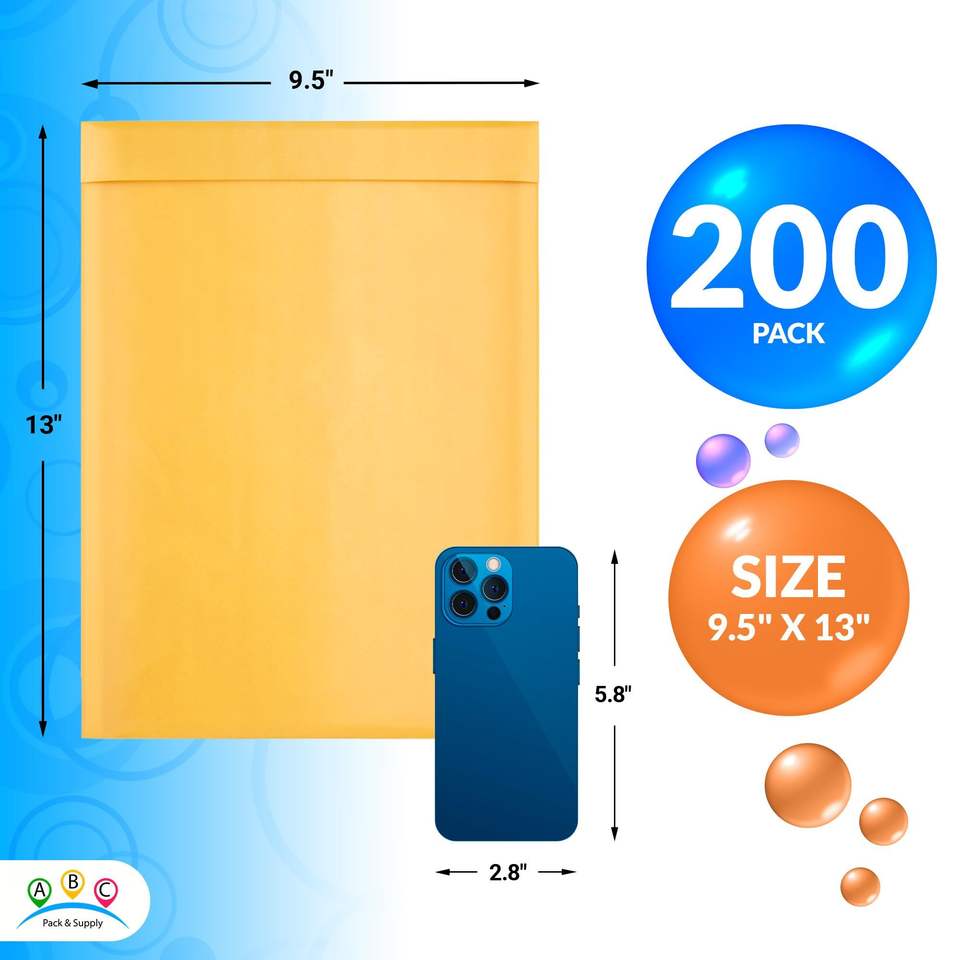 Confezione 200 giallo Bubble Kraft Mailer buste 9.5X13 pollici opache imbottite antisettiche opache impermeabili per posta