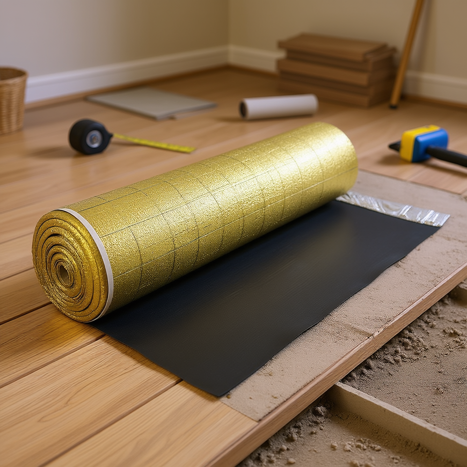 Gold Floor Underlayment 3mm Roll 200 Sq Ft Vapor Barrier Soundproofing For Flooring