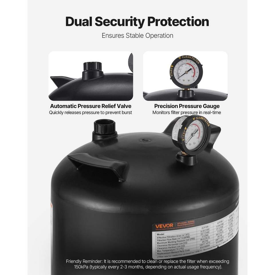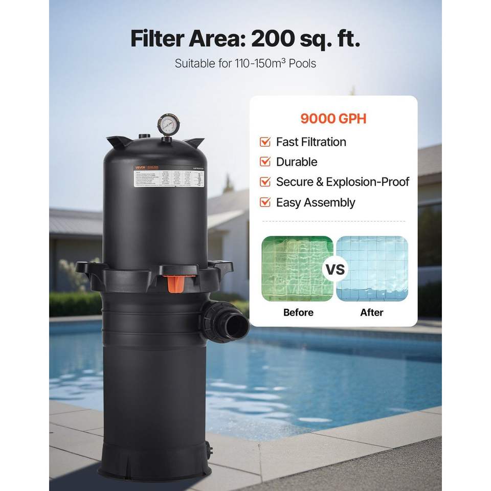 Valvola filtro a cartuccia a 2 porte da 200 piedi quadrati, sistema di filtrazione per piscina da 9000 GPH