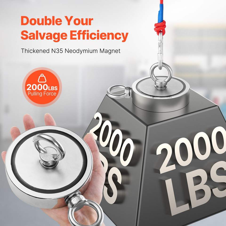 Kit di Pesca Magnetica a Doppia Faccia con Magneti al Neodimio da 907 Kg (2000 LBS) con Forte Forza di Trazione e Terre Rare per Sollevamento Magneti
