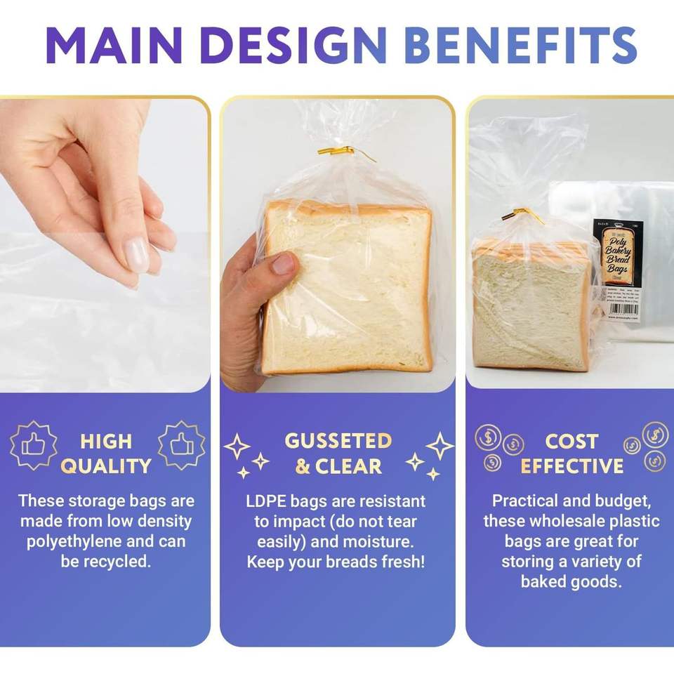 2000-Pack Polyethylene Bakery Bread Bags 4 X 2 X 12 Inches Clear Gusseted 0.65 Mil Thickness for Home & Food Industries