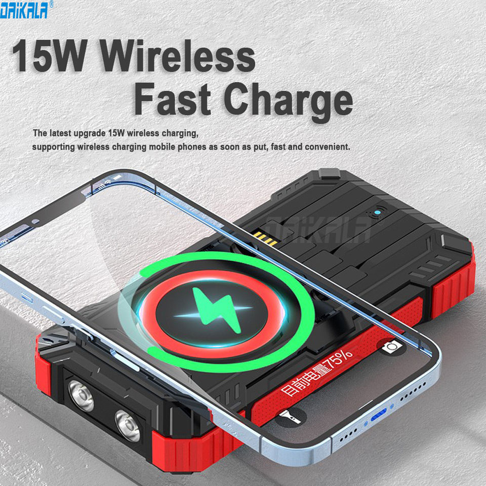 Power Bank Solare da 20000mAh con Quattro Cavi Integrati, Ricarica Wireless Magnetica 15W e Ricarica Rapida PD22.5W