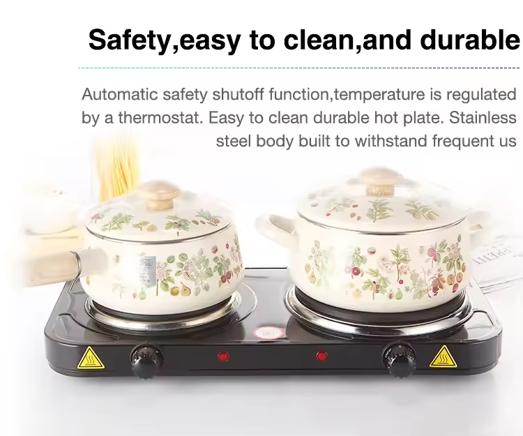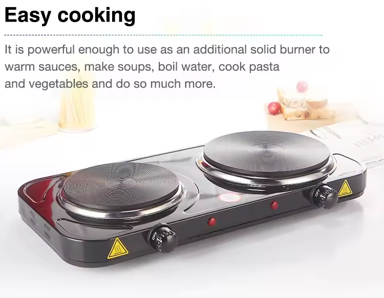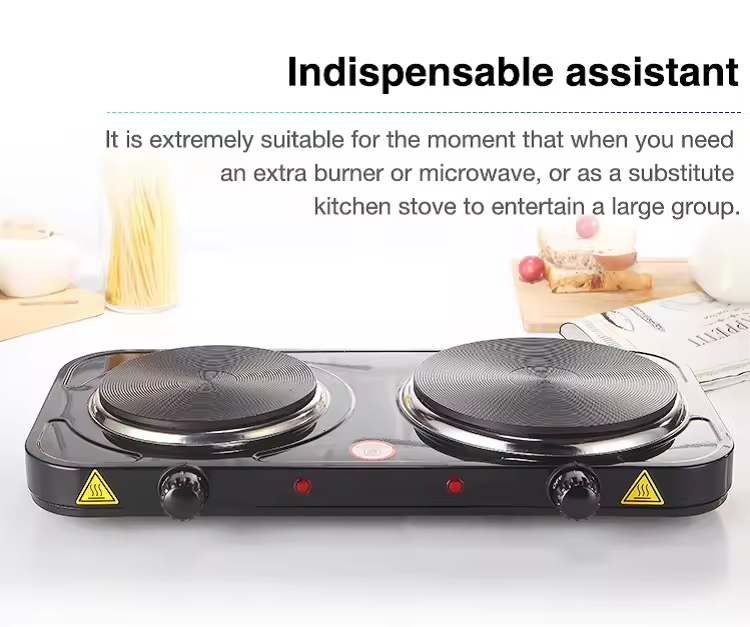 Fornello Elettrico a Doppia Piastra da 2000W, Multifunzione con Mantenimento del Calore, per Bollire Acqua, Preparare Tè e Caffè