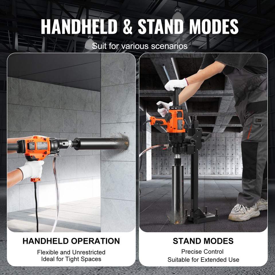 2000W Handheld and Stand Core Drill Rig 0.8-6.3in Dia High Power Core Drill Machine