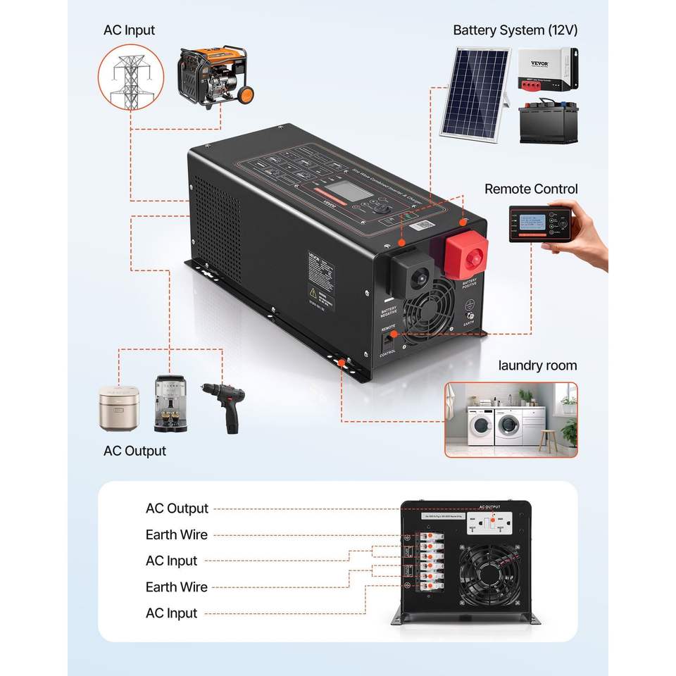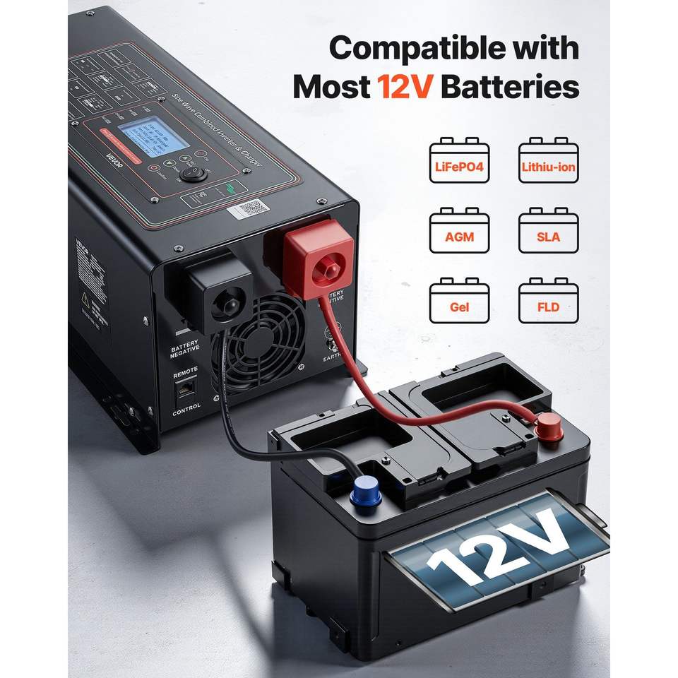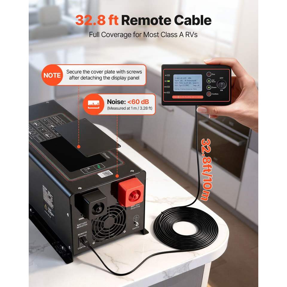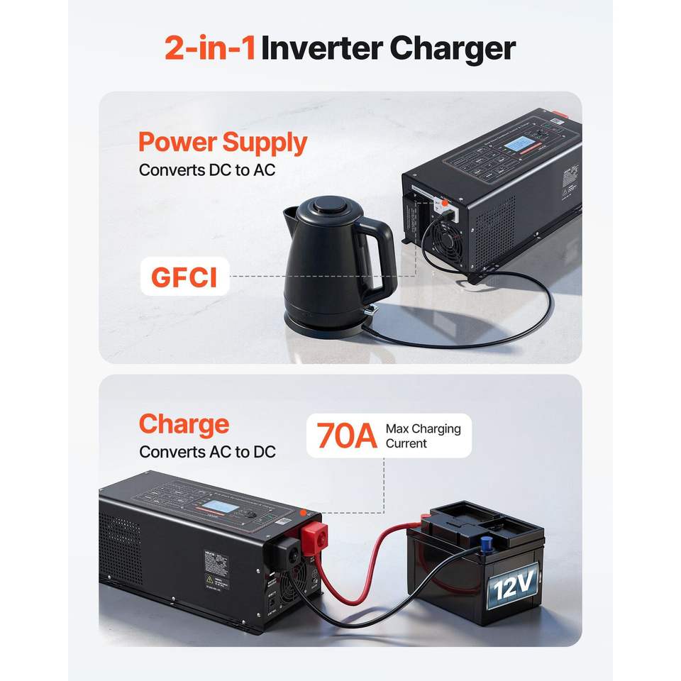 Inverter a Onda Sinusoidale Pura 2000W con Caricabatterie, Display LCD, Telecomando, da DC 12V a AC 120V, Bassa Frequenza, GFCI per Sistemi Elettrici RV