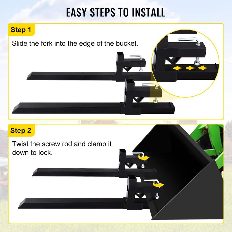 Forche per Pallet con Capacità di 2000 libbre, Accessori per Carrelli Elevatori per Trattori e Minipale