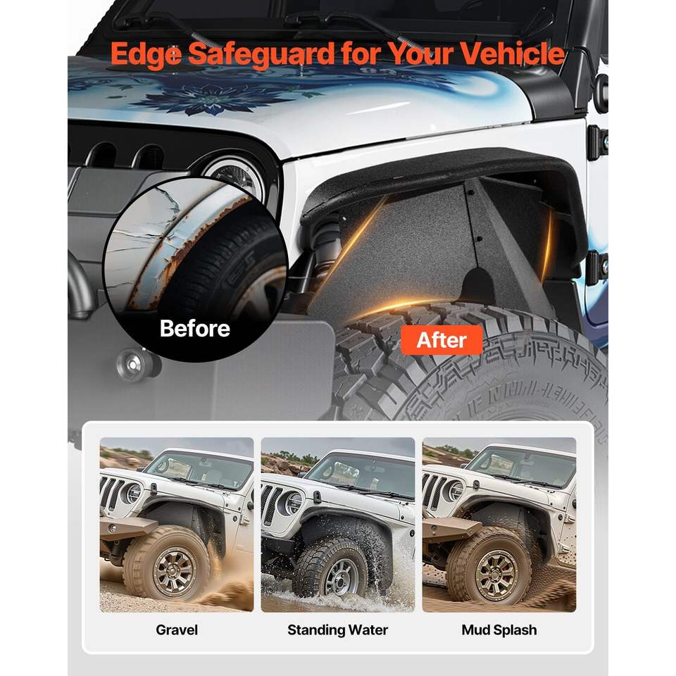 Parafanghi in Acciaio Compatibili per Jeep JK/JKU 2/4 Porte 2007-2018, Protezioni Anteriori e Posteriori con Fissaggio a Bullone
