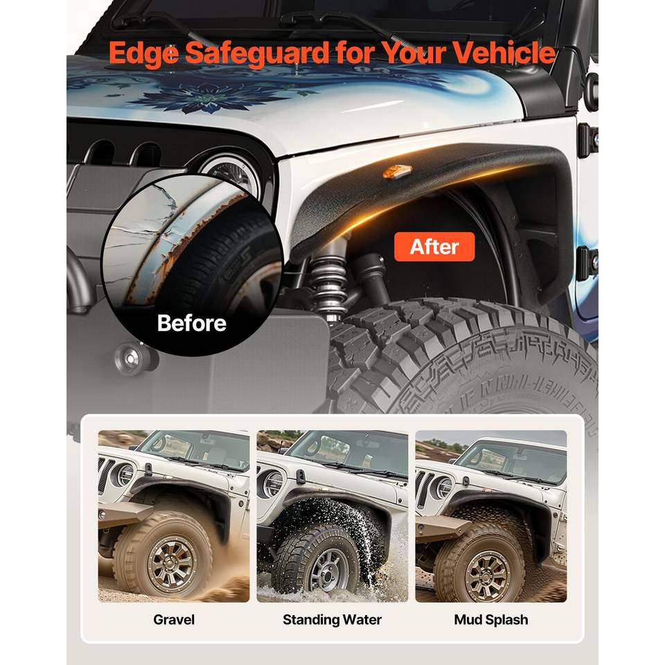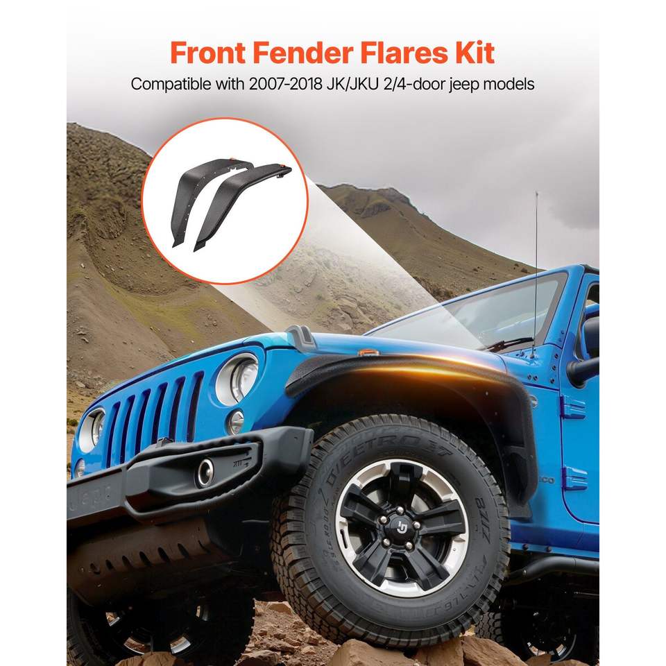 Set di Parafanghi Anteriori per Jeep JK/JKU 2/4 Porte 2007-2018, Rivestimento in Acciaio Off-Road con Illuminazione LED, Parafanghi Compatibili
