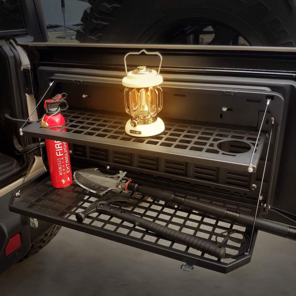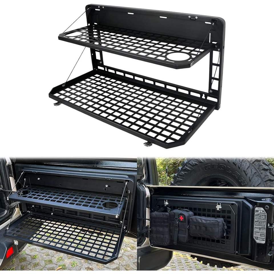 2007-2022 Jeep Wrangler JK&JL 4 Door Cargo Rack 2-Tier Tailgate Table Rear Foldable Outdoor Camping Desk Not Compatible JK