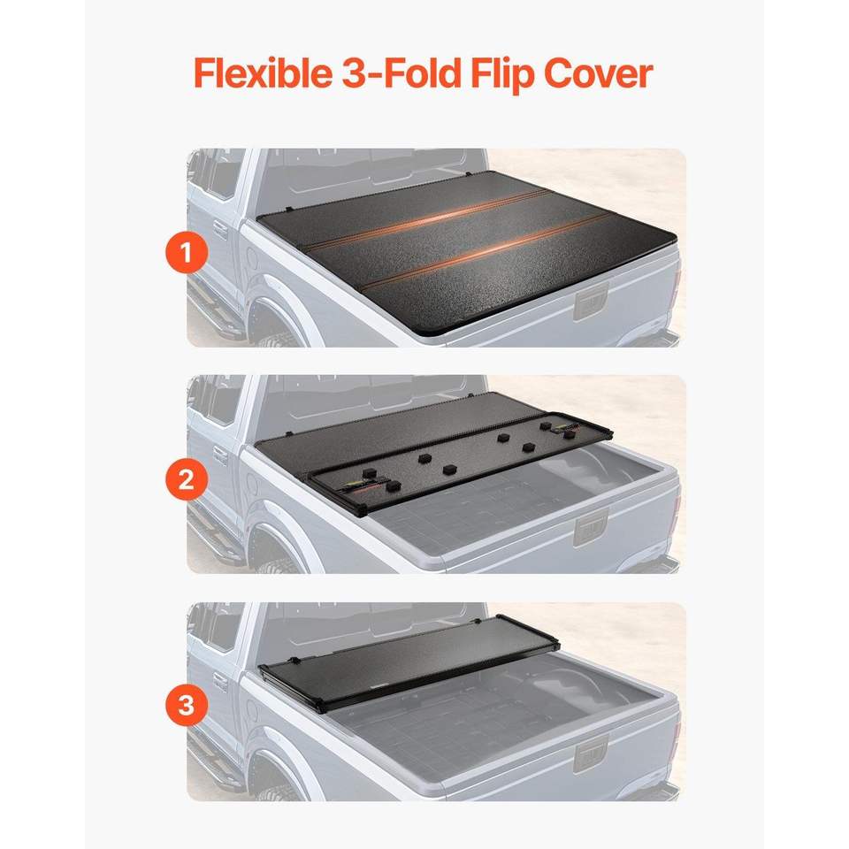 Copertura Tonneau Tri-Fold per Cassone Ram 1500 Fleetside 5.7 (67.4'') 2009-2024, Compatibile con Carrozzeria Classica/Nuova 19-24, Accesso Posteriore