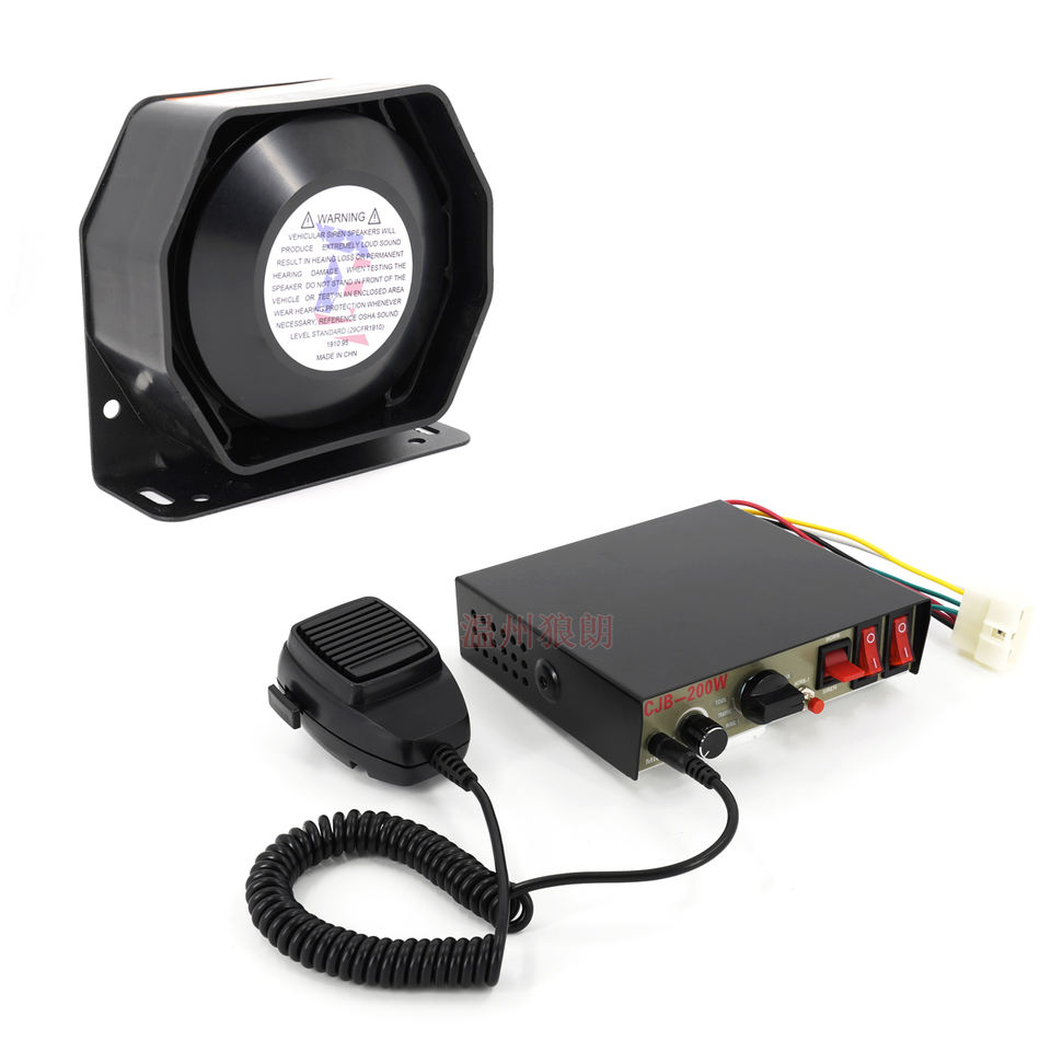 200W 12V Multi-Tone Siren Speaker with Mic - 9 Sound Alarm System for Safety Vehicles, Trucks, Construction Equipment Ambulance