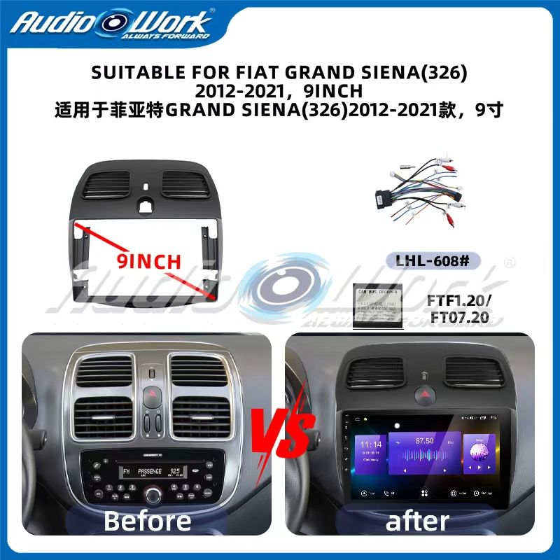 Cornice Cruscotto per Fiat Grande Siena 326 (2012-2021) per Aggiornamento Radio Touch Screen 9 Pollici