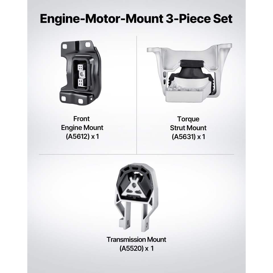 Kit di sostituzione supporti motore e trasmissione compatibili con Ford Escape 2.0L L4 (2013-2019), set da 3, OE # A5612