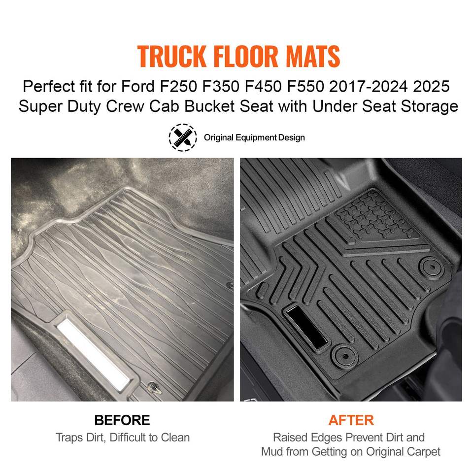 Tappetini Auto per Ford F250 F350 F450 F550 Super Duty Crew Cab 2017-2025, con Vano Portaoggetti per Sedili, Compatibili con Veicoli 2025