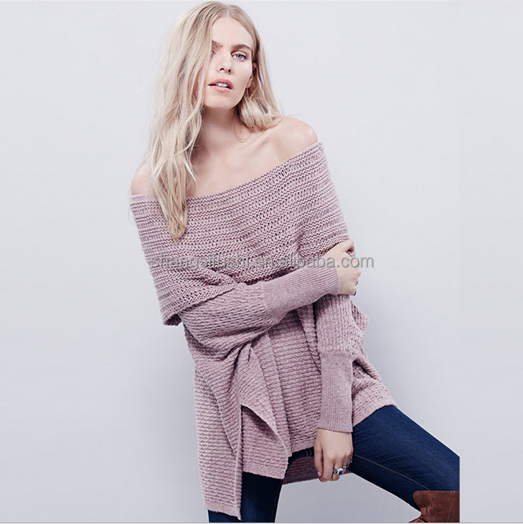 2017 Spring new Boat Neck Long Sleeve Slim off-the-shoulder women sweater knitted