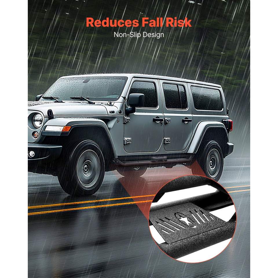Barre Laterali in Acciaio al Carbonio Nero per Jeep Wrangler JL 4 Porte 2018-2025, Pedane Laterali da 6 Pollici, Capacità di Carico 550 Libbre