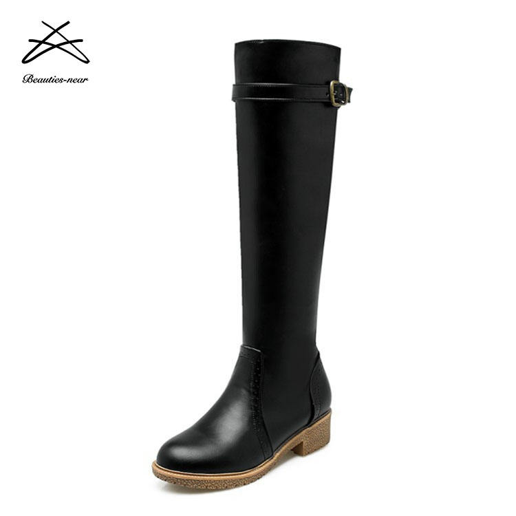 Stivali da equitazione da donna con tacco piatto in pelle pu nera di vendita calda di ultimo stile 2018