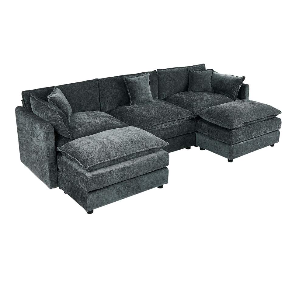 Divani da Soggiorno Grigi a Tre Posti con Due Poggiapiedi 2018