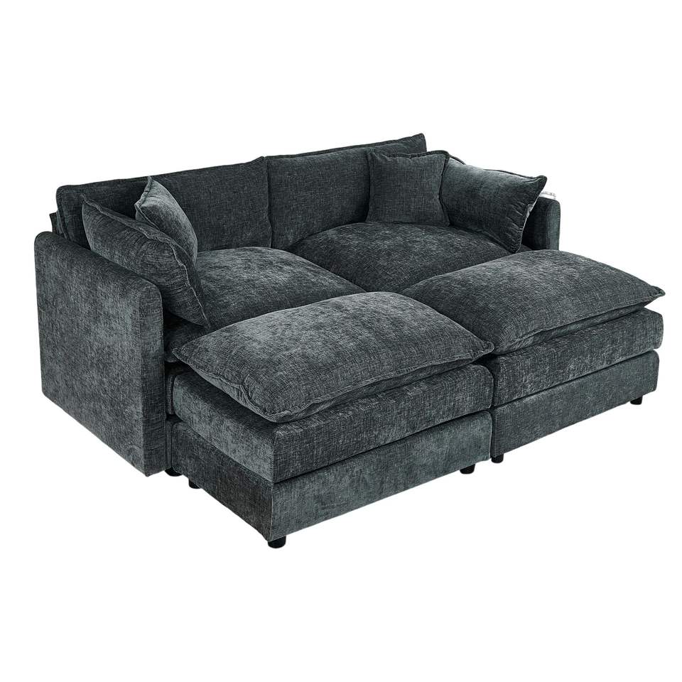 Set di Due Divani Grigi per Soggiorno con Due Poggiapiedi, Arredamento Durevole ed Elegante del 2018