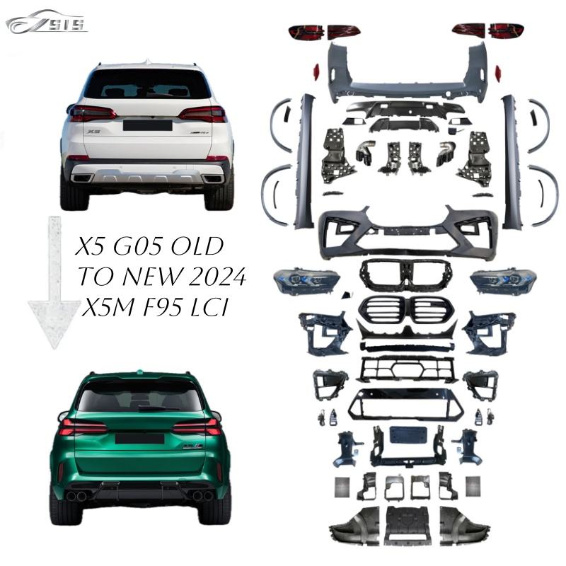2018+ X5 G05 to 2024 X5M F95 LCi Body Kits PP Bumpers Grille Exhaust Pipes Fenders Headlights for Front and Rear Position