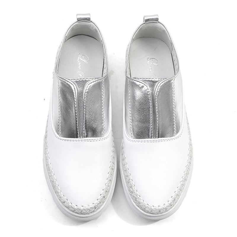 2019 Femminile di Marca Per Il Bianco Piatto Zeppe Scarpe Magazzino Prima Copia di Scuola Della Ragazza Delle Signore Casuale Pattino di Vestito di Cuoio Genuino Delle Donne
