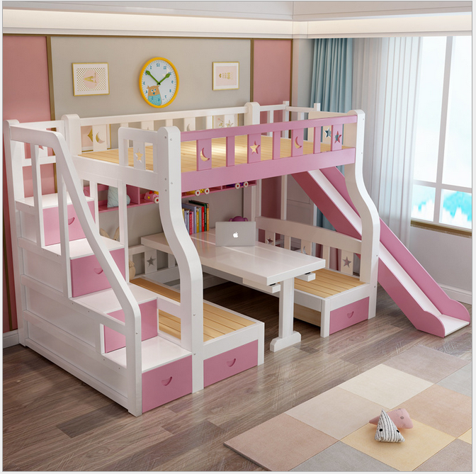 2019 Vendita calda Multifunzione in Bianco di Legno Ragazzi Bambini Letto A Castello Letto A Castello Con Scivolo